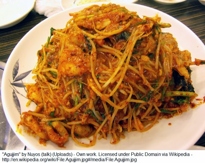 6.Japchae- Japchae in literal term means "a mixture of vegetables".A food invented in the early 17th century of the Joseon Dynasty by King Gwanghaegun's chef in order to please His Majesty's palate when he was hosting a grand party at his palace has traveled many centuries and gone on to become one of the most popular Korean dishes both inside and outside of Korea.Japchae is a dish made from dangmyeon (sweet potato noodles) and stir fried in sesame oil with an assortment of thinly sliced seasonal vegetables like carrots, spinach,onion and mushrooms so that they retain all their flavor. It is seasoned with soy sauce and sweetened sugar with a garnishing of slivers of chilly and sesame seeds can be enjoyed hot as well as cold.Though it is considered as both a side and main dish,the Japchae is served on a bed of rice and is prepared during special occasions and in Korean parties as well. Interestingly,originally the japchae was made without noodles but today they are an important element of the dish!